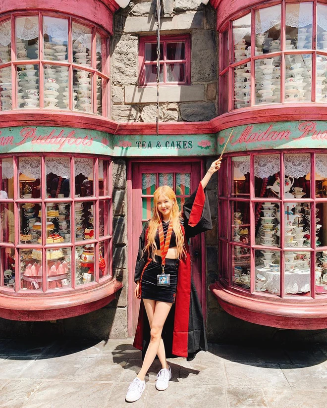 Đã thế dạo gần đây Black Pink còn đang được vi vu đi tour bên trời Mỹ nên các cô gái ăn vận ai nấy cũng đều sexy hết cỡ, khoe dáng triệt để. Nhưng không ai ngờ được rằng, Rosé khoác áo choàng phù thuỷ Harry Potter để cosplay đi chơi với hội chị em Lisa, Jisoo thôi mà cũng sexy đến vậy.